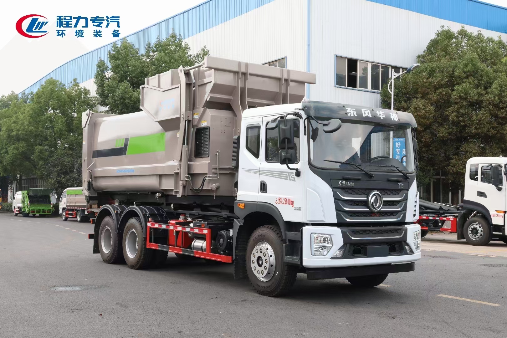 程力专汽东风华神后双桥勾臂垃圾车+移动压缩箱