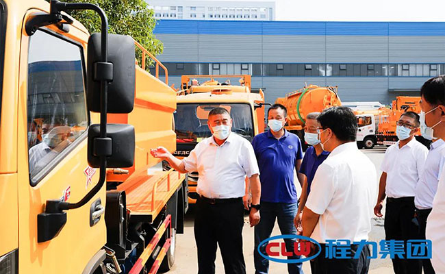 最后,代表团来到了专汽及应急装备备车展示现场,首长们对程力的高压清洗吸污车、市政环保系列产品进行了仔细的了解,愿意在这方面给与程力集团更多的资源倾斜,为程力的产品在新疆及国家“一带一路”的市场开拓做出有力的支持与帮助,为中国制造的工业产品进军国际市场贡献新疆与程力力量。