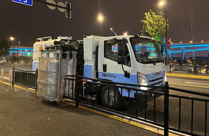 在第四届“进博会”市容环境保障工作中,一辆新型环卫作业车辆凭借其专业的技能、独特的外形、出色的工作吸引了大众的目光,成为了本次“进博会”环卫保障的一大亮点,这正是新进入申城的保洁神器——护栏清洗车。相较于以往费时费力的人工擦洗,护栏清洗车具有明显的优势。