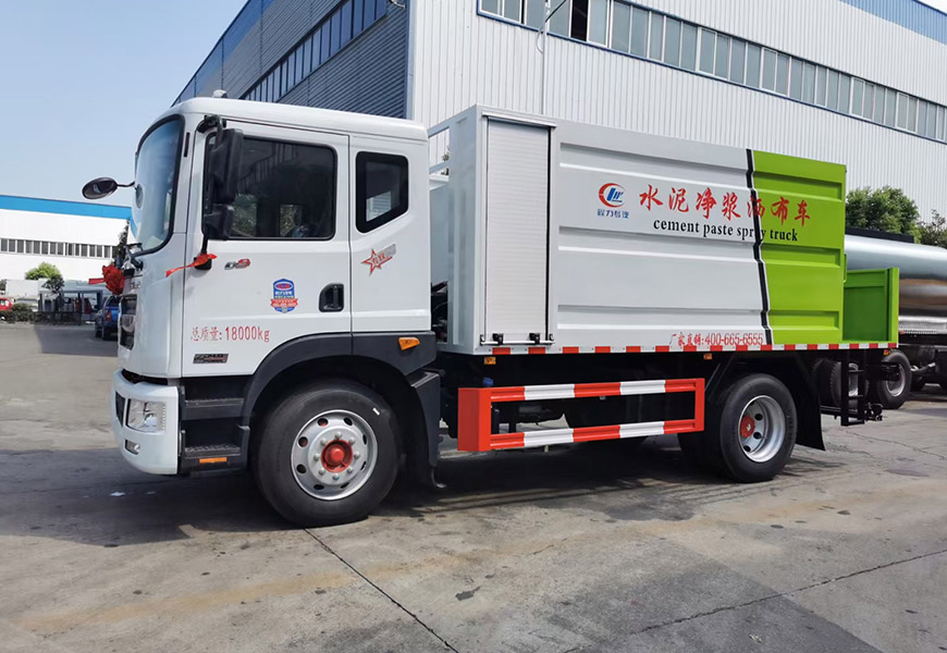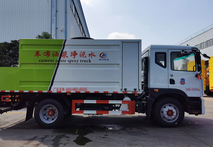 | 上装配置 | 前置6.5方水罐,配备高压水枪用作罐体清洗,后置2.8方搅拌罐,洒布宽度3.7米。该车配备黑猫牌高压水泵,水泥泵,水泥泵马达,高压泵马达,水泥搅拌器,液压泵,液压阀,调节阀,搅拌器马达,其他标配… | ||
