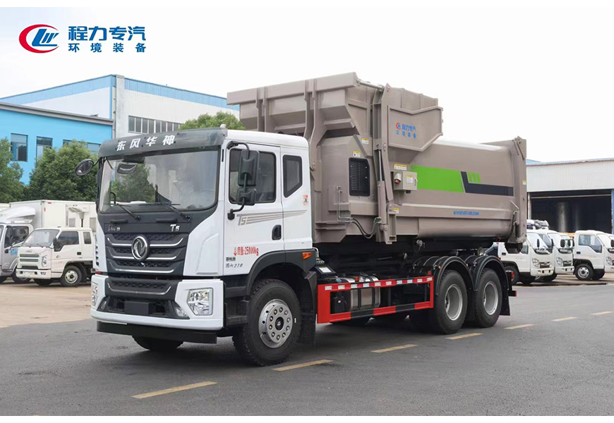 程力专汽东风华神后双桥勾臂垃圾车+移动压缩箱产品介绍