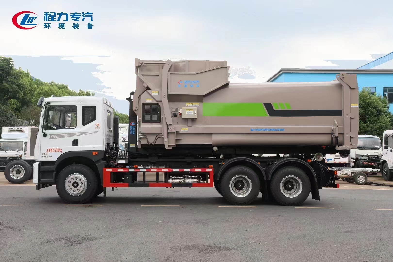 产品名称: 程力威牌CLW5253ZXXBHJ车厢可卸式垃圾车 外形尺寸: 8280×2550×3170(mm)