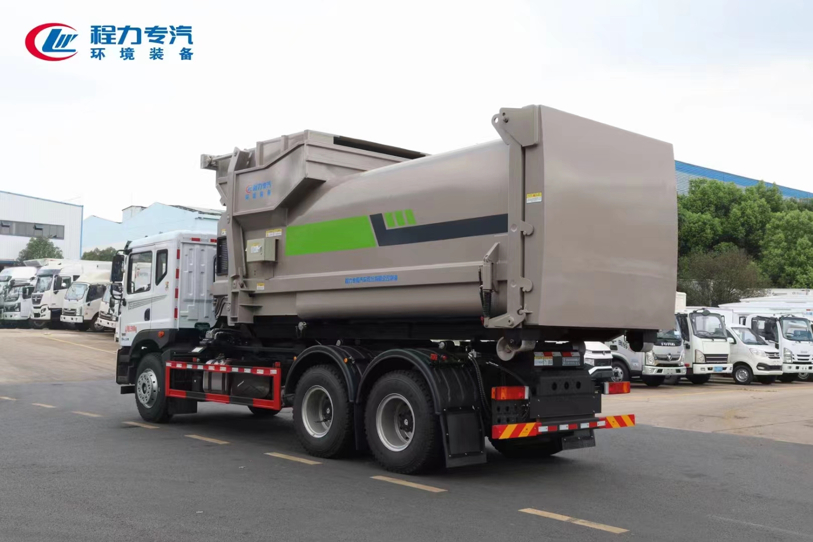 程力专汽东风华神后双桥勾臂垃圾车+移动压缩箱