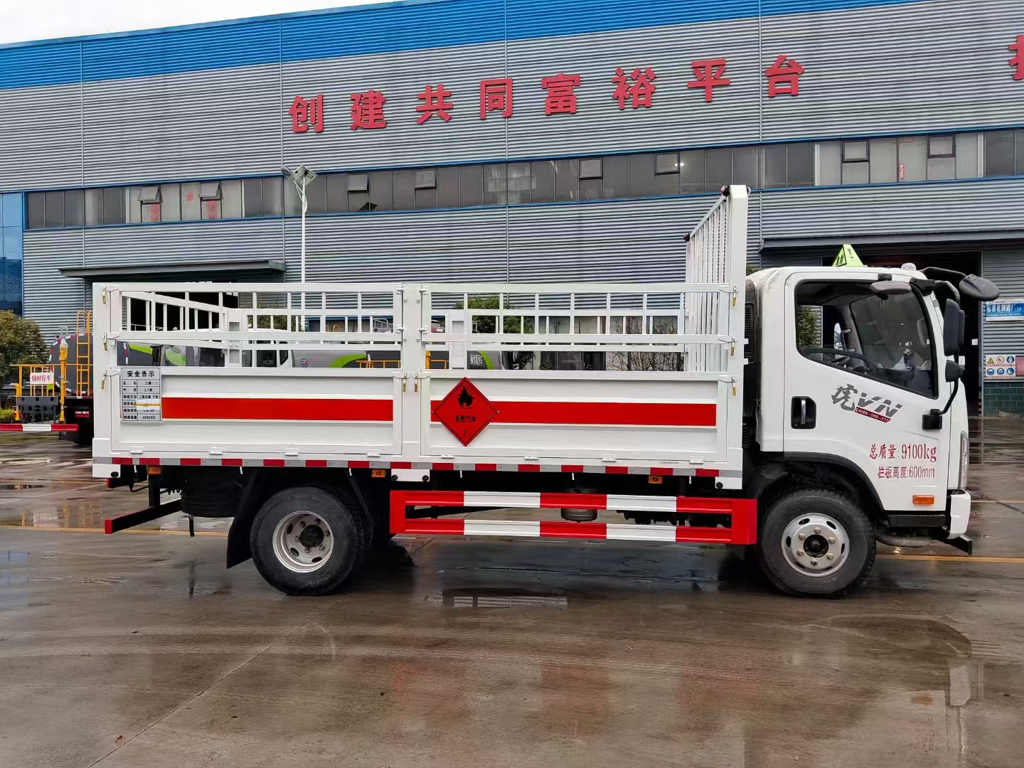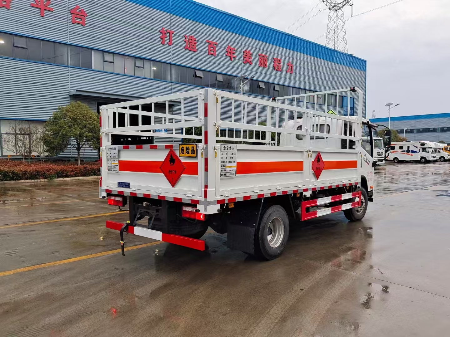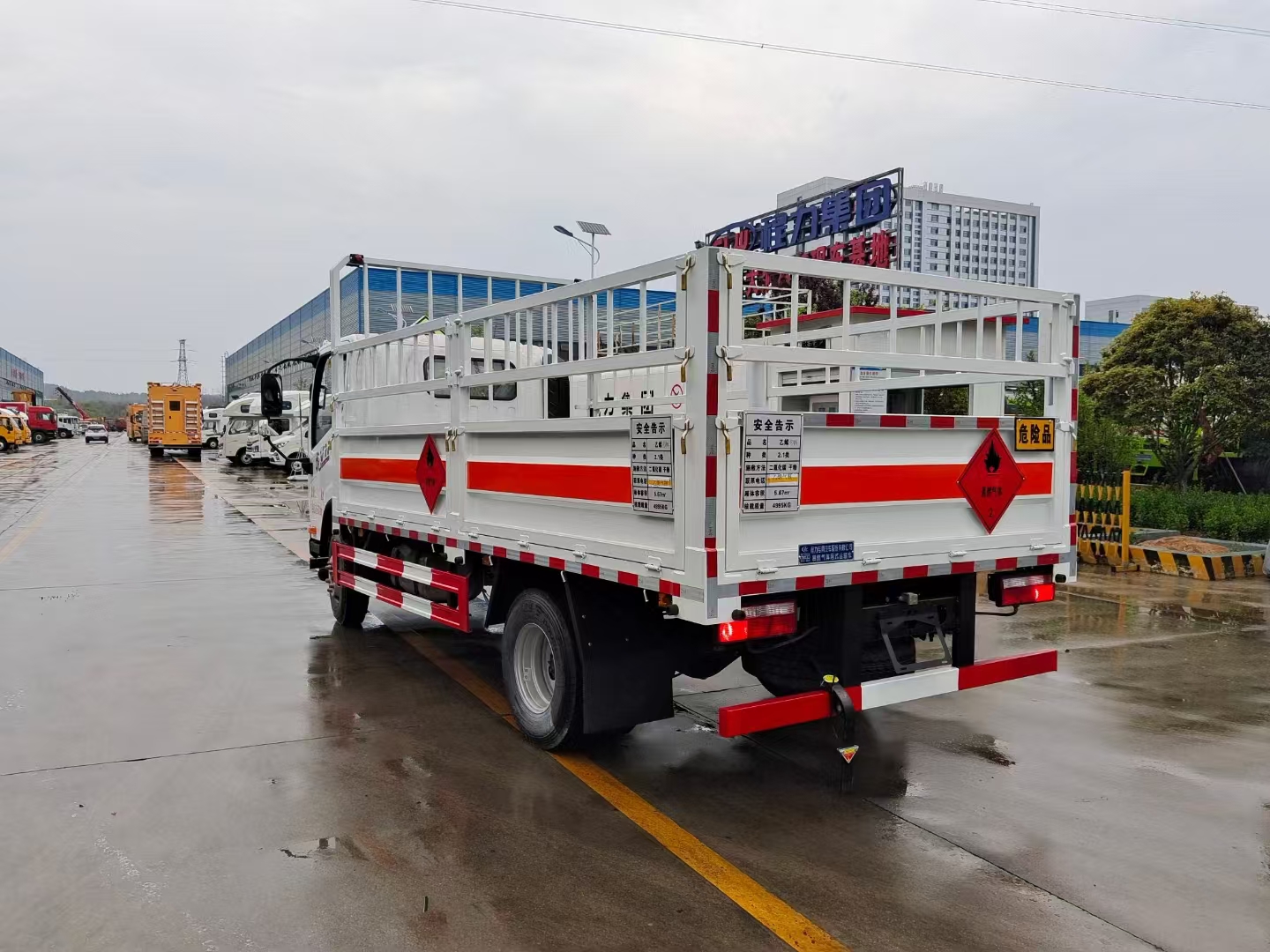 底盘配置 虎VN平顶单排驾驶室,锡柴CA4DB1A14E68,6GS42,270冲焊桥(速比4.875、轮距1640),速比4.875,7.50R1616层级真空胎,带国产ABS,前盘后楔制动器,空调+电动门窗+中控锁,气喇叭,高架箱,80L铝合金油箱,板簧3/7+3,前轮带爆胎应急装置,前碰撞预警+车道偏离辅助预警,前下防护,防飞溅挡泥板,排气火花熄灭器,限速79km/h,北斗+GPRS行车记录仪(带视频记录功能),带静电拖地带,NFH,危险品专用底盘