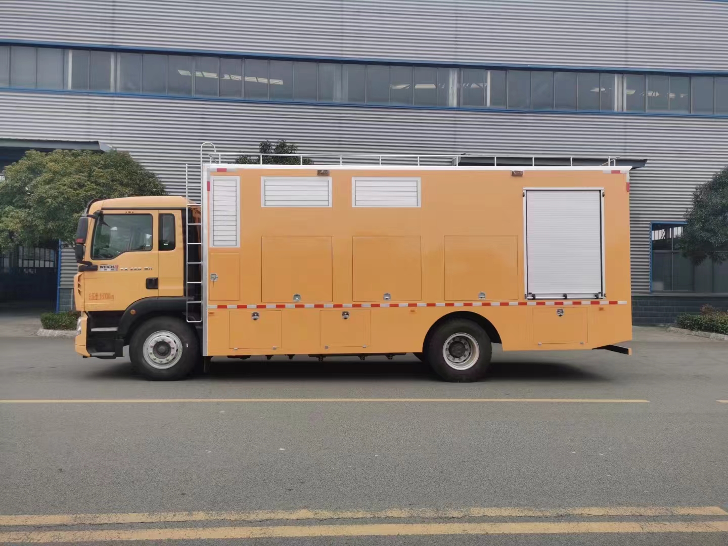| 上装配置 | 上装定制静音箱体潍柴460马力350千瓦发电机组,同时配6台便携式排涝水泵,四台水泵流量可达500m³/小时,二台可达1000m³/小时,一台车载1500m³/自吸泵,总流量6000m³/小时,扬程10米,每台泵配2根20米长 直径20厘米的排水管。程力应急抗洪抢险车系列排涝车一般多用于梅雨季节汛期防汛的紧急抢险排涝,效果非常显著,其优点排水量大、速度快,有效解决汛期难题。 | ||