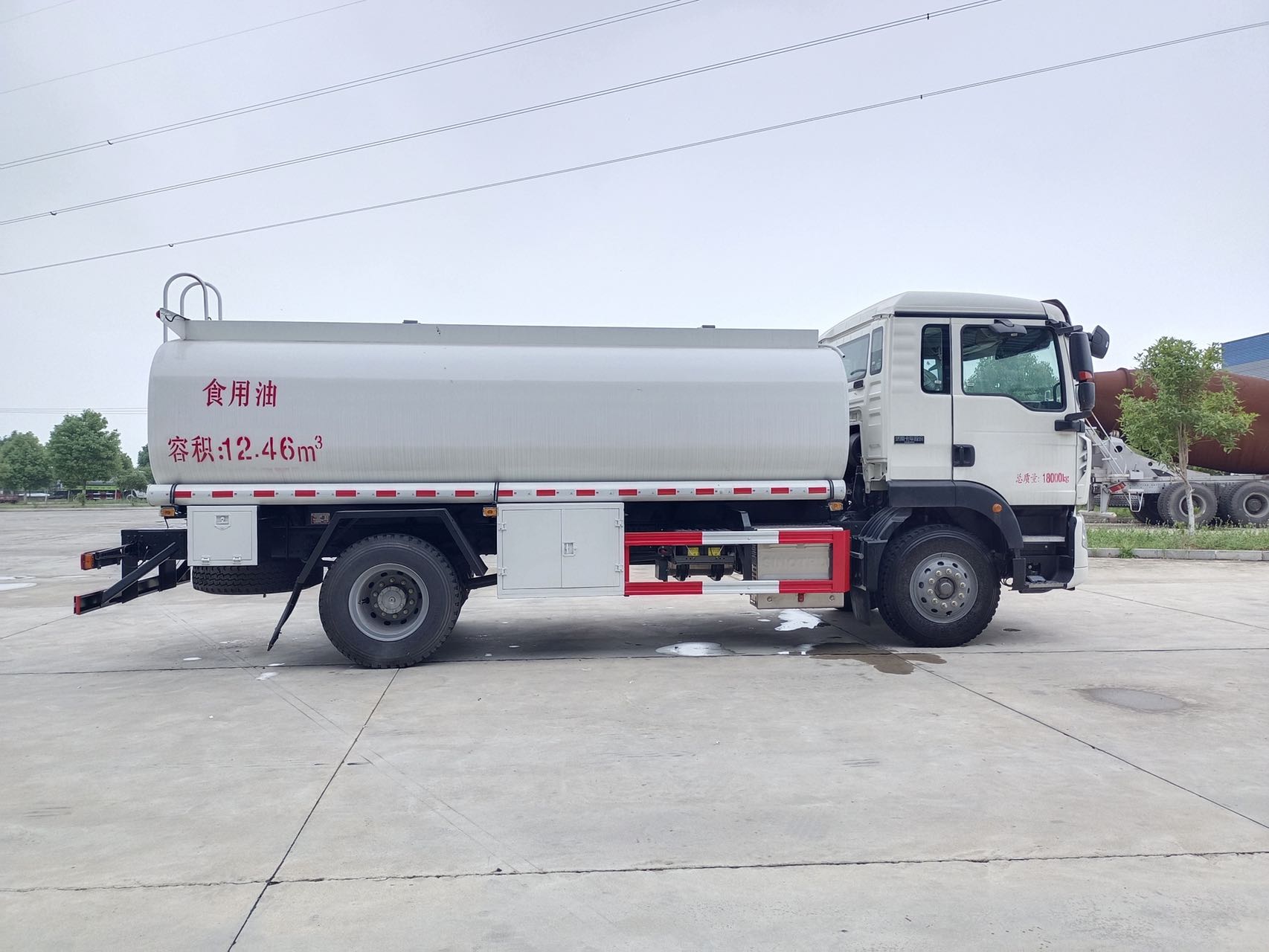 | 上装配置 | 罐体有效容积:15方,标配Q235板材(选装304不锈钢板材(筒体4.2m或铝合金板材(筒体6mm)),碳钢钢罐体4.5mm厚,碳钢封头4.75mm厚,隔板4mm厚,带1个普通罐口,带80-60普通泵,可泵进泵出,3寸管道,3寸出口,其它所有附件为碳钢材质,其他按厂标,提供底盘证,整车证,上户发票 | ||