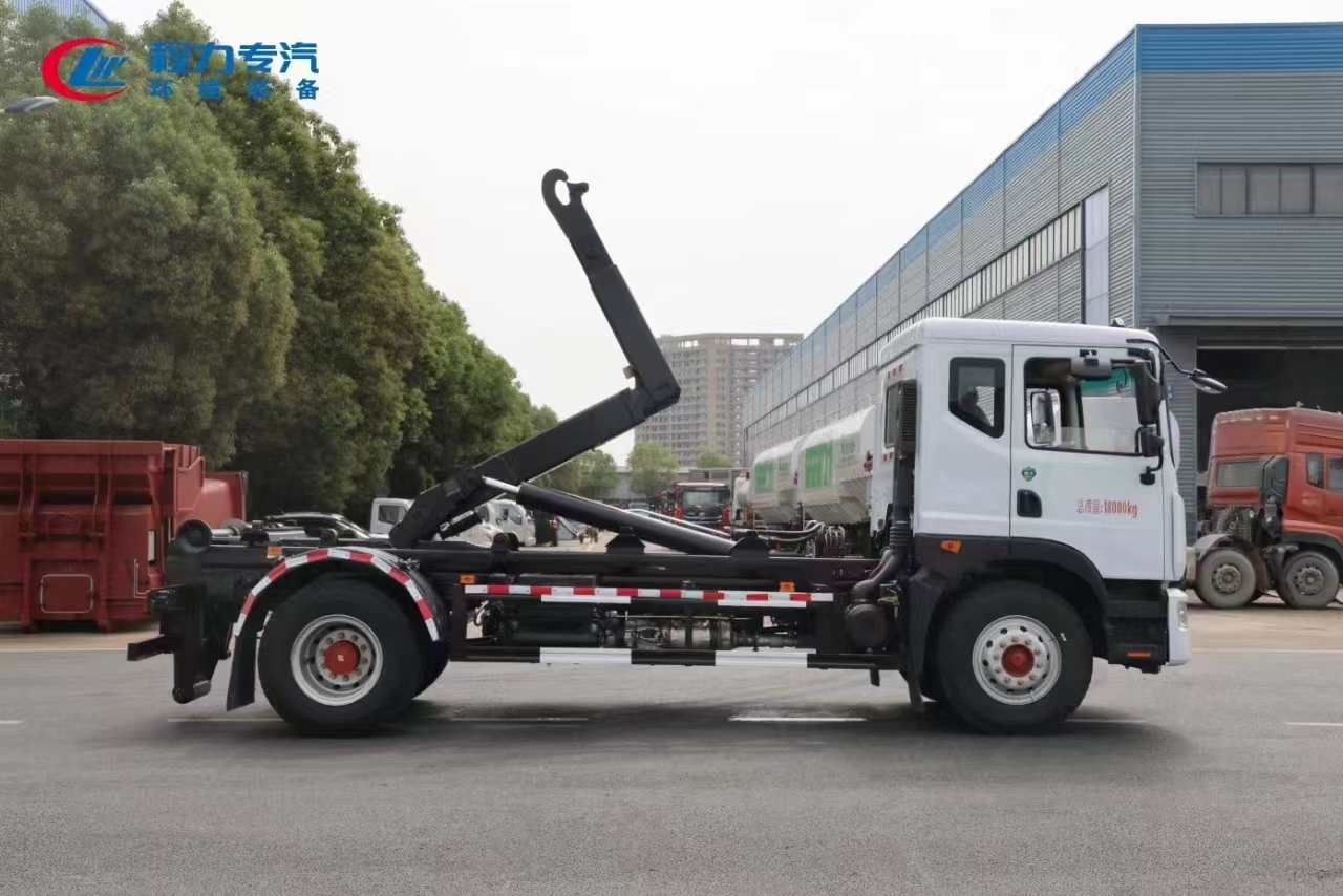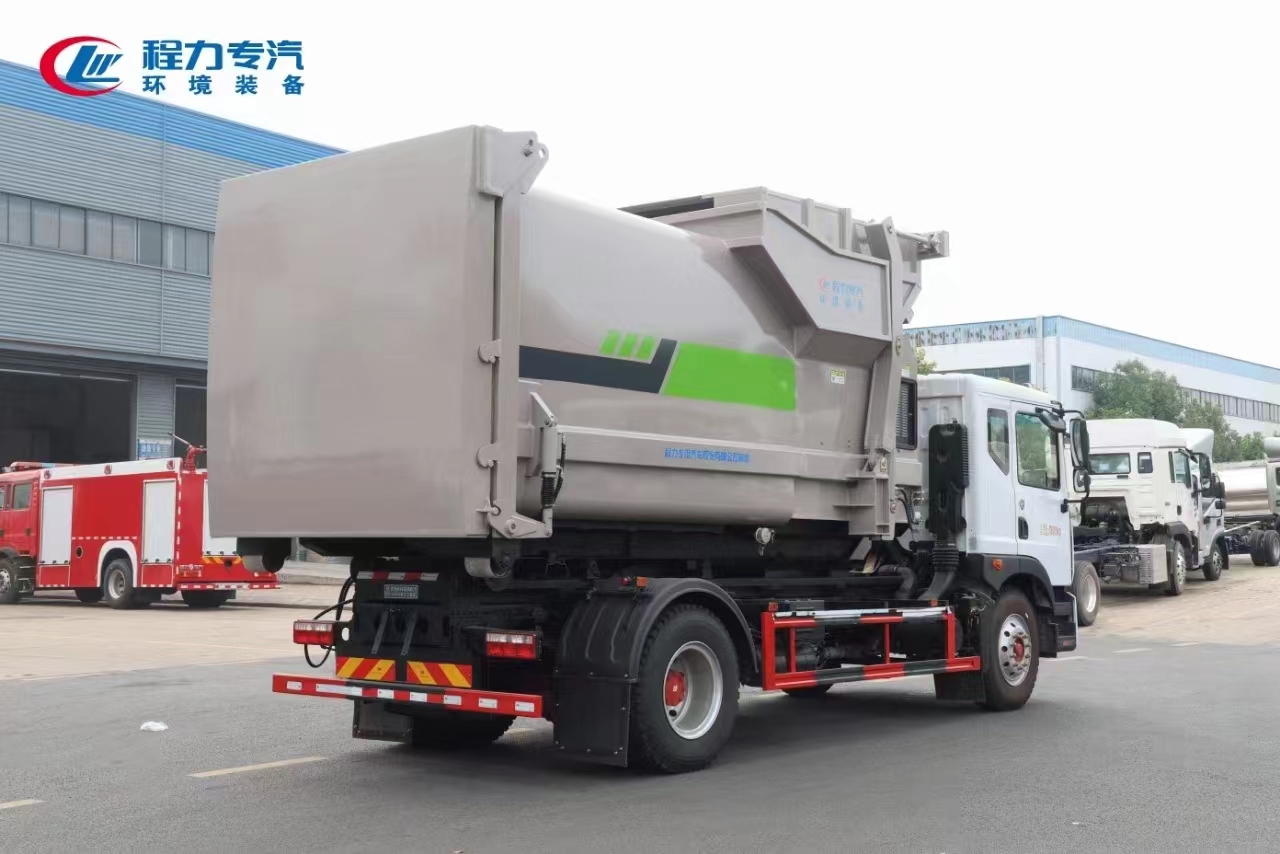 | 上装配置 | 内置安全泄压阀(独有技术),配套10-16方勾臂垃圾箱或移动站,主勾臂由高强度板材制作,双油缸控制,伸缩式主臂,加强型上装结构,液压支腿,横向锁紧,品牌多路阀,液压油泵,标配室内外操作(带遥控),防误操作,带平衡阀,液压锁。 | ||