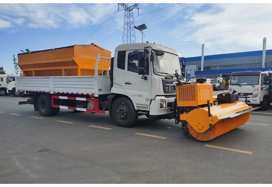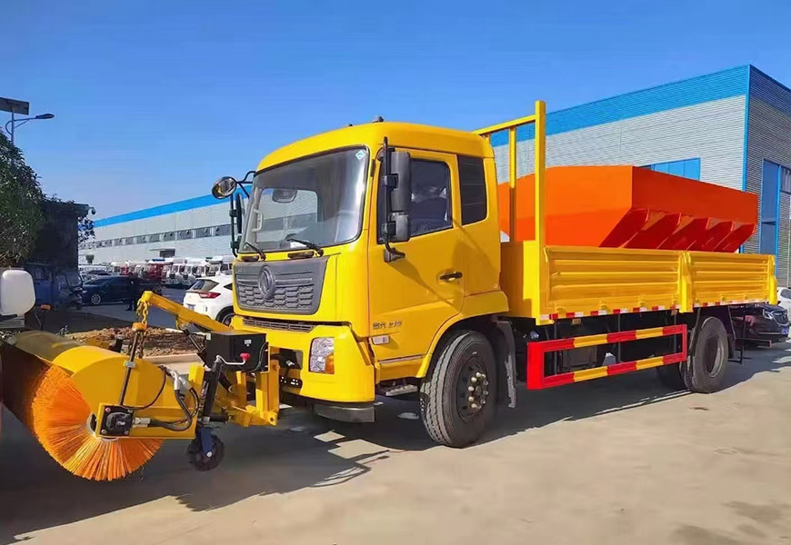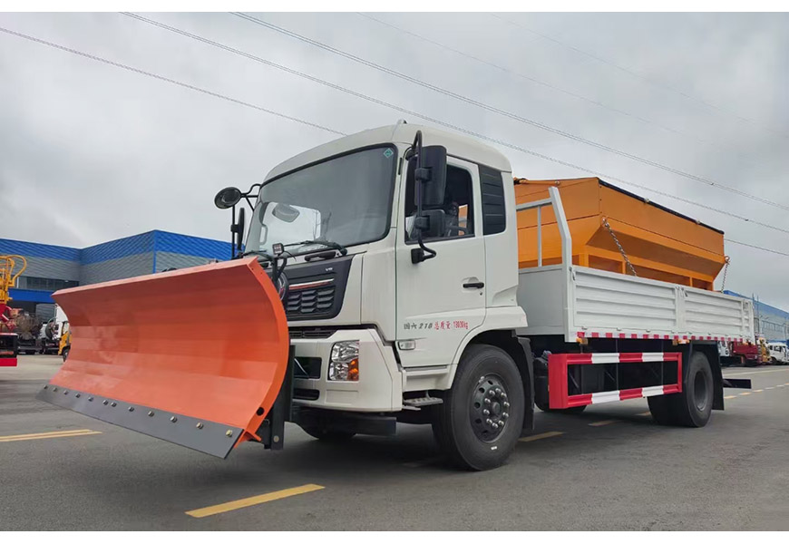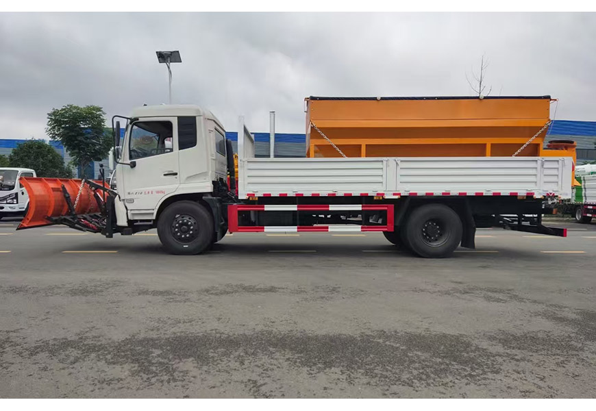 | 上装配置 | 整体避障除雪铲,夜间工作灯,车取力重型除雪铲(左右双液压驱动)可搭配8立方或者10立方融雪撒布机(独立柴油动力,链条刮板输送,采用V型料仓,顶部带防雨罩,折叠式不锈钢撒布盘)3-3.5米雪铲、3-3.5米雪铲及撒布机均采用集成按键驾驶室操作。 | ||